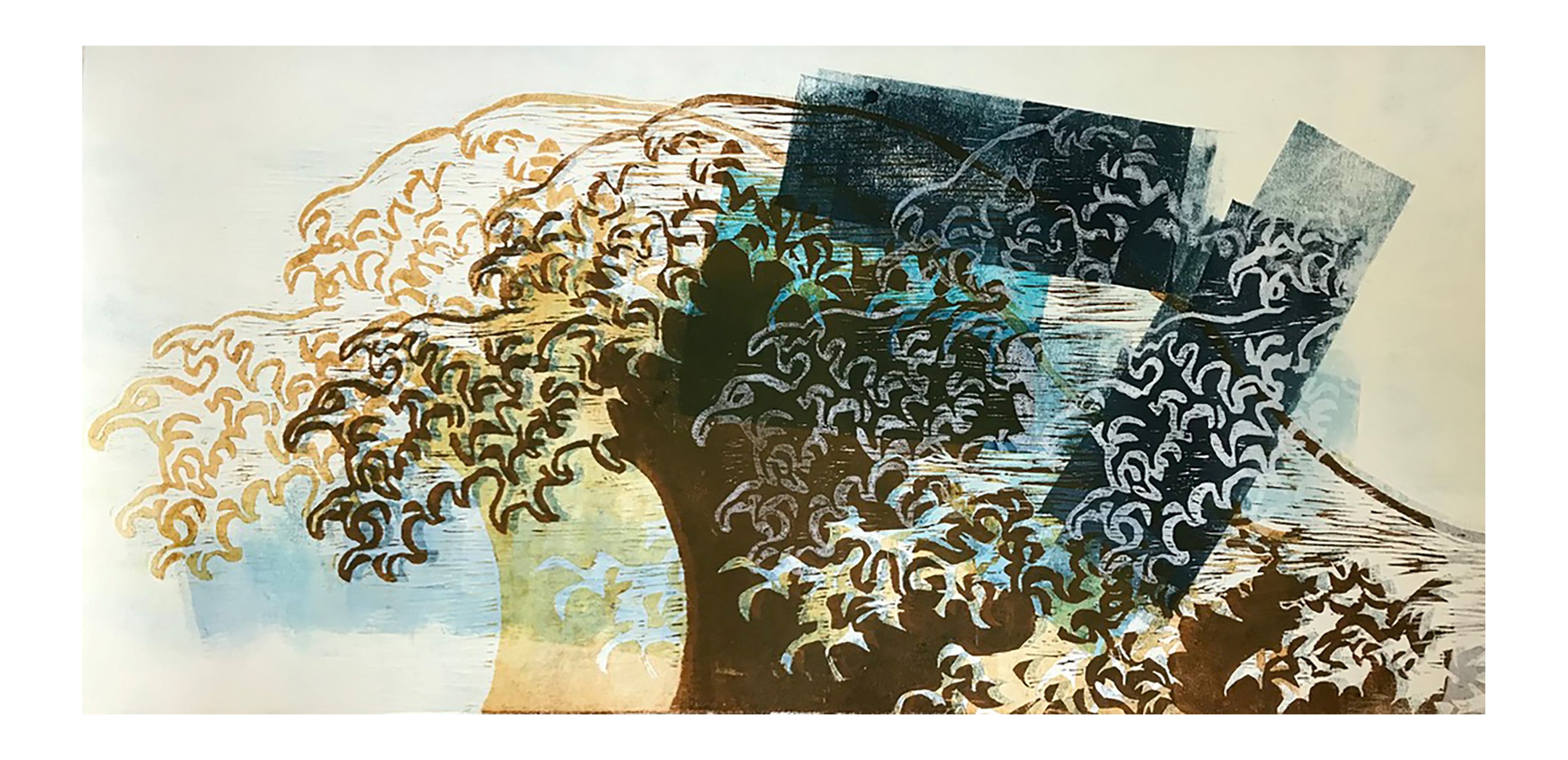 ZWEIIMDRUCK est un duo d’artistes formé de Suki Meyer-Landrut et de Christine Pohlmann. Depuis leur rencontre à l’automne 2010, une amitié artistique s’est développée, suivie d’expositions communes de leurs peintures. Et l’envie d’explorer de nouveaux horizons les a conduits à la gravure au printemps 2014. Elles ont acheté une presse à imprimer ensemble, emménagé dans un petit atelier et travaillé ensemble. Au début, elles travaillaient chacune sur leurs propres plaques et gravures. Puis elles ont découvert que l’autre faisait toujours les plus belles choses : elle gravait les découpes les plus raffinées, trouvait les couleurs les plus fraîches, avait les meilleures idées d’images ! Elles ont voulu collaborer encore plus : utiliser les panneaux de linoléum et de bois gravés par l’autre, imprimer sur les feuilles préparées par l’autre, composer une gravure ensemble. Voilà, Zweiimdruck était né ! Deux femmes qui se rencontrent presque quotidiennement pour concevoir et créer ensemble, pour regarder et discuter du travail accompli, pour parler de la Déesse et du monde, pour observer et laisser tout cela entrer dans leur art, leur création, leur conception… Bien sûr, passer du « je » au « nous » reste passionnant, car elles sont différentes – c’est logique ! – et parfois opposées et en désaccord. Ce sont là des défis auxquels elles sont confrontées deux fois, mais qui sont aussi doublement gratifiants dans l’art. Suki Meyer-Landrut a étudié le graphisme à Düsseldorf et obtenu son diplôme. Après avoir travaillé pendant plusieurs années dans le secteur de la publicité à Düsseldorf et Hambourg, elle a décidé en 1996 de tourner le dos à la publicité et de mettre sa créativité exclusivement au service de ses propres projets. Christine Pohlmann a étudié la littérature, la philosophie et l’histoire de l’art à Göttingen et Giessen et a obtenu un Magister Artium. À partir de 1991, elle a décidé de ne plus se contenter d’étudier l’art en théorie, mais de le mettre également en pratique.