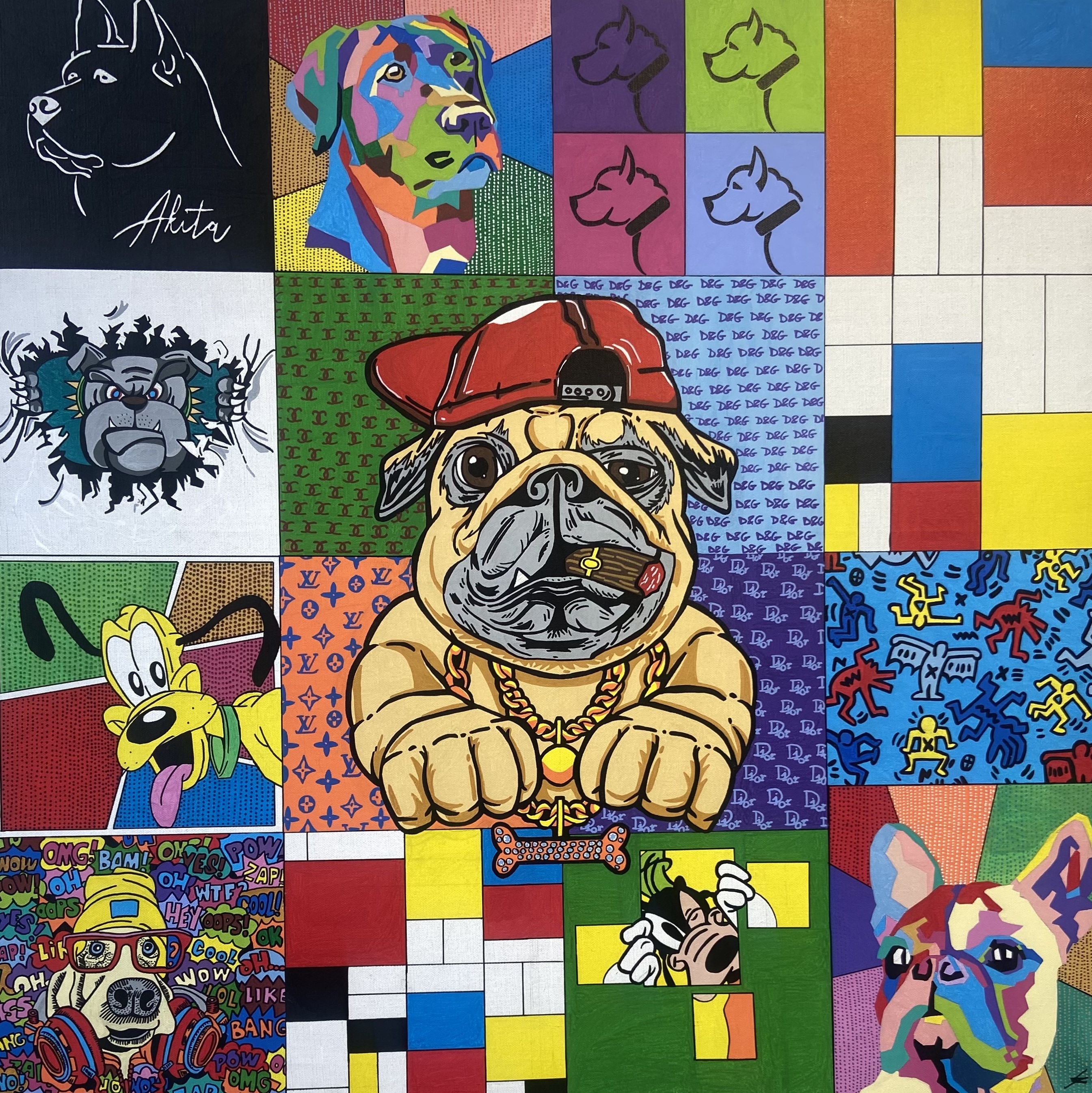 Crédits : SCHAEFFER Matthieu – La neuvième vie du chat – 120 x 120 cm – acrylique sur toile- jeune /ALIXANT Léonard – FRIENDS – 100 x 100 cm – acrylique sur toile- jeune / BOLDA – Light in the clearing – 110 x 90 cm – acrylique, huile sur toile- jeune / Gaspi – 6 Ans pour un diplôme – 94 x 155 cm – acrylique, pastel, technique mixte sur toile- jeune