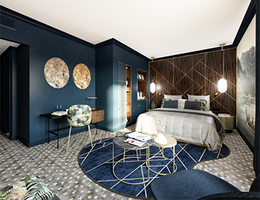 La suite Barbizon : une adresse entièrement dédiée aux couples et aux amoureux avec de vastes chambres à la décoration unique et équipées de jacuzzi.
